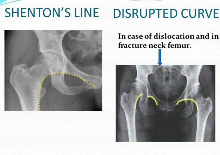 In radiography of hip region this line is represented by continuous curved line formed by upper border of obturator foramen and lower margin of neck of femur(as seen in image 1) DURING FRACTURE OF NECK OF FEMUR OR DISLOCATION OF HIP JOINT THIS CURVE IS DISRUPTED(as seen in image 2)