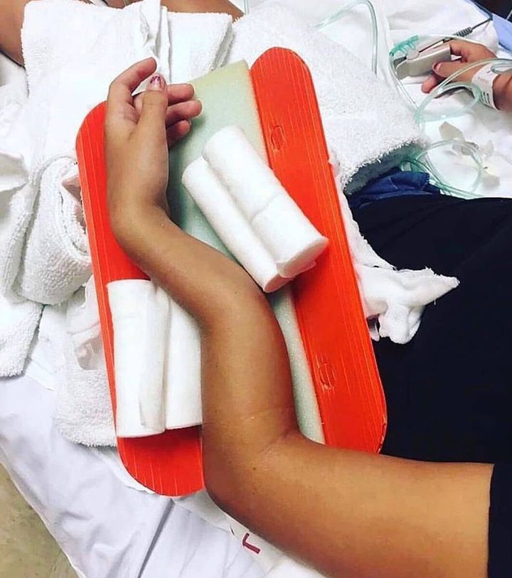 This young patient got injured after his back foot slipped and he landed on his arm. The patient with a midshaft forearm fracture typically complains of pain, and possibly deformity, at the immediately following trauma. Physical examination begins with visual inspection, which may reveal swelling and an obvious deformity, suggesting a displaced fracture, or a wound overlying the fracture site (ie, open fracture) requiring immediate surgical evaluation. Range of motion may be limited due to pain, and testing should be performed gently, judiciously, and only if there are no obvious signs of displaced fracture or dislocation. In cases of suspected midshaft forearm fracture, anteroposterior and lateral radiographs showing the entire length of the radius and ulna are usually diagnostic. Due to significant displacement, the initial treatment is closed reduction that is attempted when fracture angulation exceeds 10 degrees or displacement exceeds 50%. Reduction involves placing the patient's affected arm in finger traps while the brachium is secured with a strap or weights. This setup allows for ready manipulation of the forearm and rapid splinting reduction is achieved. After satisfactory alignment is achieved, the fractured arm is placed in a long-arm posterior splint with the elbow at 90 degrees and the wrist in neutral (ie, without supination or pronation) and slight extension for 7 to 10 days. After the period of immobilizaion, the cast or splint is removed, and the patient is placed in a functional forearm brace for four to six more weeks. The functional brace, which is generally custom-made to fit the patient, allows full flexion and extension at the elbow and wrist and full pronation and supination of the forearm. Credit: @medicaltalks