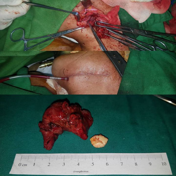 Sialolithiasis should be considered in the differential diagnosis of any patient with chronic or recurrent salivary gland swelling or inflammation. It occurs most frequently in Wharton’s duct followed by Stenson’s duct, and rarely in the sublingual glands. In the acute setting, patients with sialadenitis secondary to calculi are treated conservatively with antibiotics, and stones less than 2mm may pass spontaneously. Stone formation is more frequent in areas where the duct is narrow or compressed. Management of sialoliths depends on the stone size, location, number of stones and the extent of ductal obstruction. Surgical management ranges from minimally invasive to open surgical techniques Sialoliths are composed of both organic and inorganic substances. They are thought to originate from secretory inactivity of the salivary gland leading to creation and accumulation of sialomicroliths. These in turn become colonized with bacteria leading to duct inflammation with cellular exudate and fibrosis. Risk factors include dehydration, certain medications such as diuretics, anticholinergics, and antihistamines, certain autoimmune conditions, systematic abnormalities with calcium metabolism, and altered salivary pH. The submandibular gland is more frequently excised for chronic sialadenitis secondary to lithiasis. Risks include marginal mandibular nerve weakness.