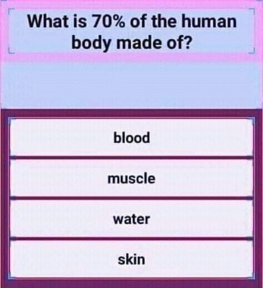 Water. so everyone need to be hydrated... In order to keep the body & brain proper functioning.