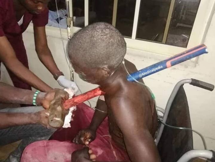 Construction worker fell from the top of a story building, landing right on a SLEDGEHAMMER! π¨ He underwent urgent surgery to remove the impaled piece of equipment, penetrating his neck, and has since made a full recovery. @Medicalpedia for more!