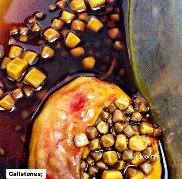 This condition is known as Cholelithiasis (Presence of stones in the gallbladder). •Cholesterol gall stones: Gallstones are the stones that form in the gallbladder or bile ducts. The common types of gallstones are cholesterol stones, black pigment and brown pigment. Cholesterol gallstones occur more frequently in female gender as compared to male. Types: Black pigment gallstones occur when there is increased destruction of red blood cells, while brown pigment gallstones occur when there is reduced flow and infection of bile duct. Symptoms: Nausea, vomiting, diarrhoea, obesity, elevated blood triglyceride levels, clay coloured stools, dark urine and Crohn's disease are common symptoms. Cause: It is not known exactly, what causes gallstones. Diagnosis: Gall stones are diagnosed as follows; Ultrasound, abdominal CT scan, Gallbladder radionuclide scan, blood test etc. Treatment: Most of the time, you won’t need treatment for gallstones unless they cause you pain. Sometimes you can pass gallstones without even noticing. If you’re in pain, your doctor will likely recommend surgery. In rare cases, medication may be used.