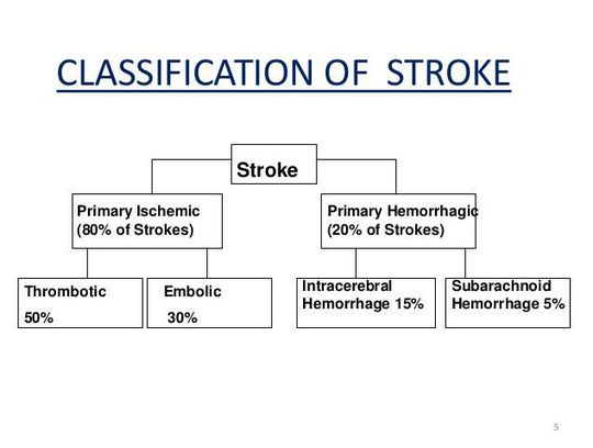 Stroke is of two types *ISCHEMIC stroke *HEMORRHAGIC stroke Ischemic stroke is formed due to clot formation that causes non supply of blood to a part of brain ISCHEMIC - due to THROMBUS or EMBOLIC THROMBUS- AN intravascular clot formed within blood vessel EMBOLI- AN blood clot or fat deposits that has been carried to the blood vessel HEMORRHAGIC STROKE : DUE to rupture of blood vessel or aneurysm It may be intracerebral or subarachnoid It may be caused due to accident or trauma The damaged part of the brain will lose its normal working and impairs body functions TREATMENT: THE THROMBUS OR EMBOLI IS REMOVED BY PASSING A STUNT THROUGH FEMORAL OR CAROTID ARTERY AND giving proper medication