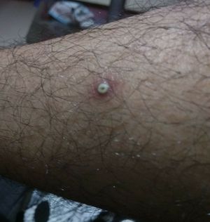 In this case a Full history of the patient is necessary ....It can be a steph inflection,...washing the area with antibacterial and applying antibiotic ointment will help .Also taking antibiotics