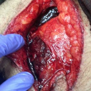 This is the case story of a 51 y/o male. He came to the ER because he was cutting wooden boards for a home remodel using an electric saw. Patient refers he was doing so with the boards on top of his thighs to save time. Needless to say he had an accident. Once encountered, patient disclosed to being HIV positive, as well as having Atrial Fibrillation and being a active cocaine user. On initial inspection, the wound deepness was very impressive. Also it could be seen that the rectus femoris had been slightly damaged and the sartorius muscle was badly severed. Fortunately no major vessels where damaged. Due to the wound severity, patient was taken to surgery few moments after. After surgery, patient is progressing favourably and is expected to make full recovery. Last Tuesday he has been discharged from the hospital. Images and Clinical Case: @dr.johnmarti