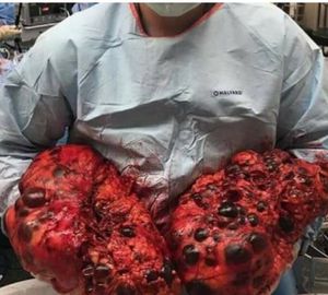 Polycystic kidney Disease Symptoms :: include high blood pressure, back or side pain and a swollen abdomen. Treatments :: include medication to control blood pressure, pain relievers and cyst removal. A kidney transplant may also be required.