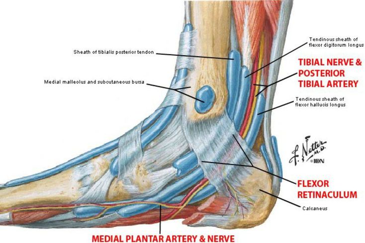 Medial to lateral Tibialis posterior Flexor digitorum longus Posterior tibial artery Tibial nerve Flexor hallucis longus