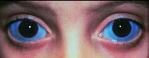 Osteogenesis imperfecta (OI) is a hereditary collagen disorder causing diffuse abnormal fragility of bone and is sometimes accompanied by sensorineural hearing loss, blue sclerae, dentinogenesis imperfecta, and joint hypermobility.