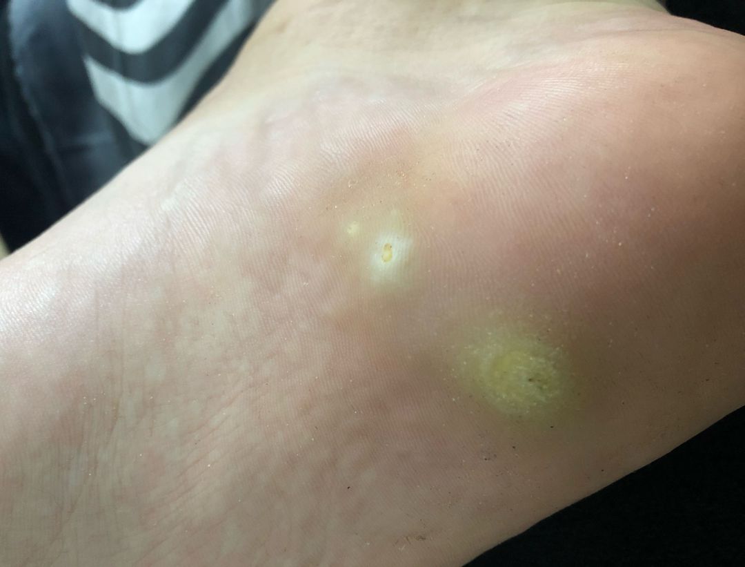 A patient having a this mass shown in the picture with severe pain when pressed, location:sole of right leg