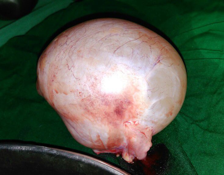 Women 34 years old with Stomaches in lower right quadrant abdomen. Right ovarian cyst of neoplasm