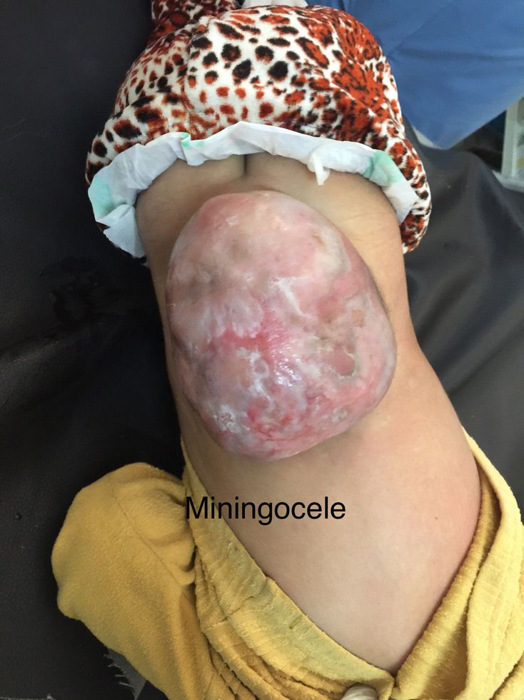 It's a birth defect where there's a sac protruding from the spinal cord. The sac contains spinal fluid but doesn't contain any neural tissue. it could be covered with skin or with meninges