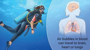 A blockage of blood supply caused by air bubbles in a blood vessels or the heart.