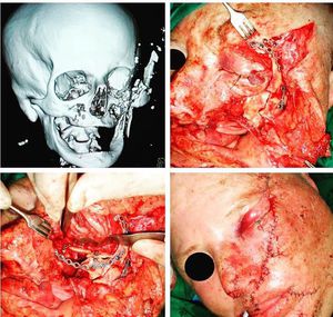 Comminuted fracture in a patient victim of truck accident e! Total reconstruction of the left orbit was made. All fractures were fixed with 1.5 and 2.0 systems. A satisfactory postoperatively result was obtained.