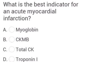 Troponin I but I think hsTNT is even more sensitive and anp bmp too