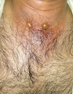 A 22 year -old male patients presented with one day history of Pain full blister Sore throat Fever mild Head ache Flaring What is your diagnosis and treatment ?