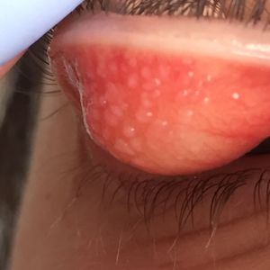 Cobblestone —> conjunctivitis alergy