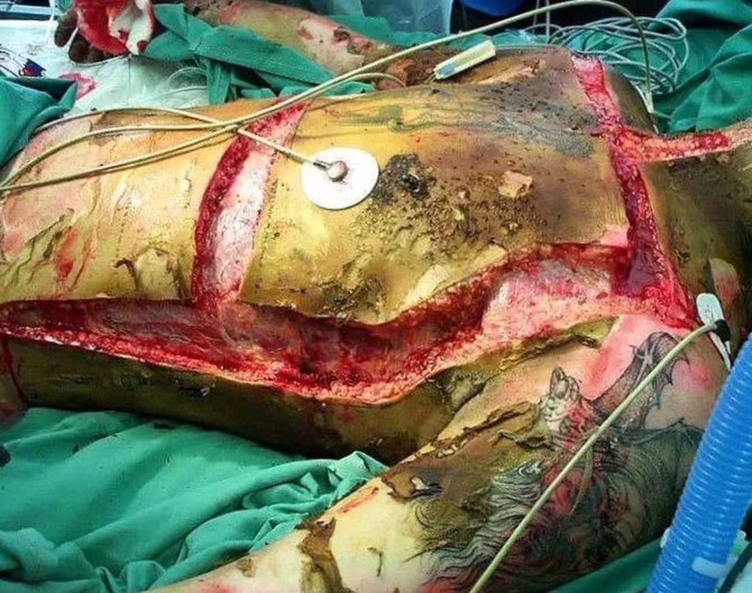 thoracotomy is a surgical procedure to gain access into the pleural space of the chest....... therefore escharotomy is done to treat this 3rd degree case