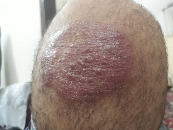 He is not febrile, ill and toxic. He is relatively fine. Just complained of pain, warmth and pus drainage if that area (like pustule).
