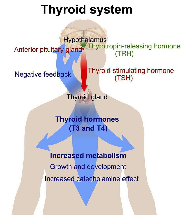 The figure explain the thyroid galnd how work in the body and what're hormones act on .