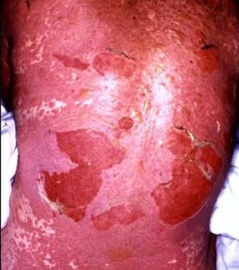 Toxic epidermal necrolysis (TEN) is a type of severe skin reaction. Together with Stevens–Johnson syndrome (SJS) it forms a spectrum of disease, with TEN being more severe. Early symptoms include fever and flu-like symptoms. A few days later the skin begins to blister and peel forming painful raw areas.
