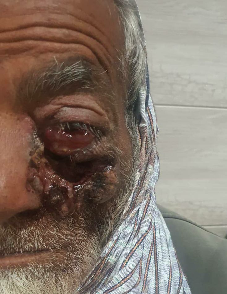 A 65 year old male with a perulent wound refered by ophtalmologist to infectious disease clinic. The would has happened from 1 year ago. It was a blister at beginning and after manipulation it becomes a black base wound. The zygomatic bone in the effected area has been destructed. No history of trauma. History of bites unknown.
