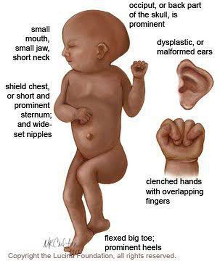 Triosmy 18 Incidence :1/4000 Mental, growth and developmental retardation Generalized hypotonia Microcephaly with prominent occiput Clenched fists Rocker bottom shape feet (prominent heal) Small pelvis Short sternum Congenital heart disease :VSD, PDA