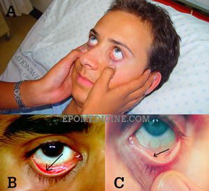 A - Pallor examination B - demarcation showing normal conditions C - ANEMIC Conditions as no demarcation .