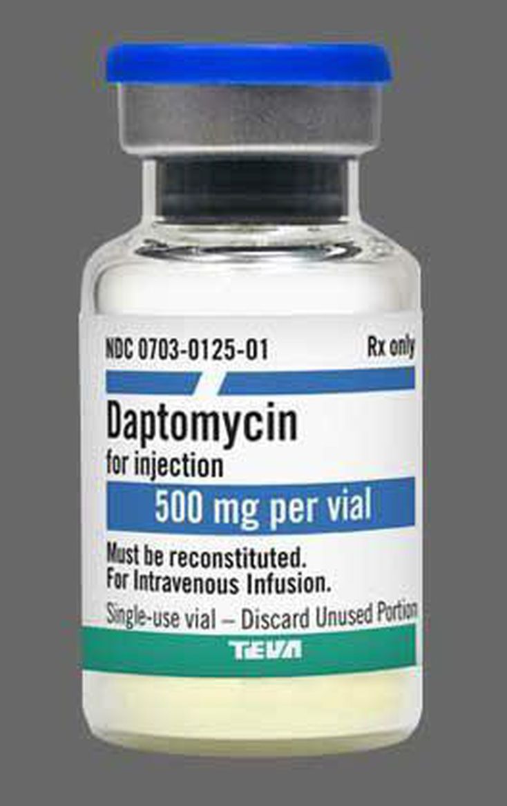 *_Daptomycin_* is a cyclic lipopeptide antibiotic derived from the organism Streptomyces roseosporus. Daptomycin is used for the treatment of various bacterial infections caused by Gram-positive bacteria, including methicillin-resistant Staphylococcus aureus (MRSA) and vancomycin-resistant Enterococci (VRE).