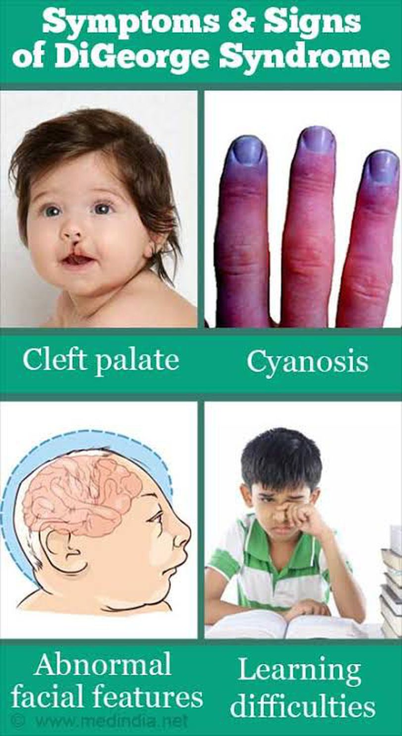 ⏹A congenital aplasia or hypoplasia of the thymus caused by a missing gene on chromosome 22 and subsequent deficiency in T lymphocytes and cell_mediated immunity . Also characteristic are hypoparathyroidism (⬇⬇Ca+ causing tetany) and heart defects. ⏺Note: NO thymic shadow ❎on chest X-ray.