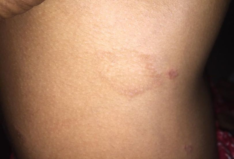 21 yr old female pt b/b husband with the complains of onset itching rashes and redness at various locations on body since a week ...