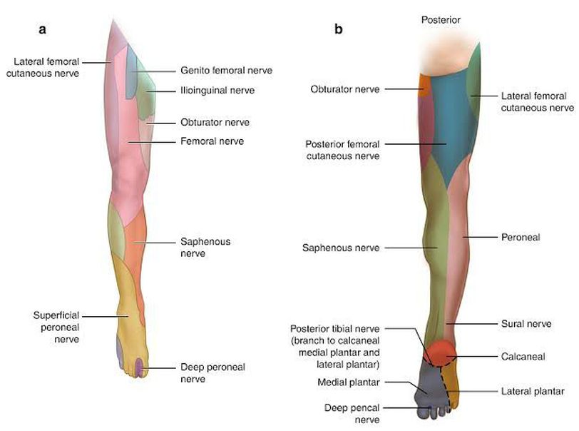 ⏹MEDICAL_NOTE: __________________ ⏺Femoral nerve is the most common nerve to be affected in diabetic patients . The picture is to show the affected areas by the lesion.