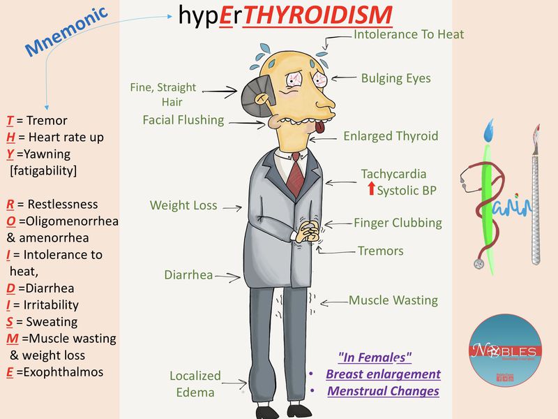 Follow me on instagram @harirtuhafy ....This is an illustration of the signs and symptoms of Hyperthyroidism done by me … hope you find it useful … and tell me what you think about it 😁🌹