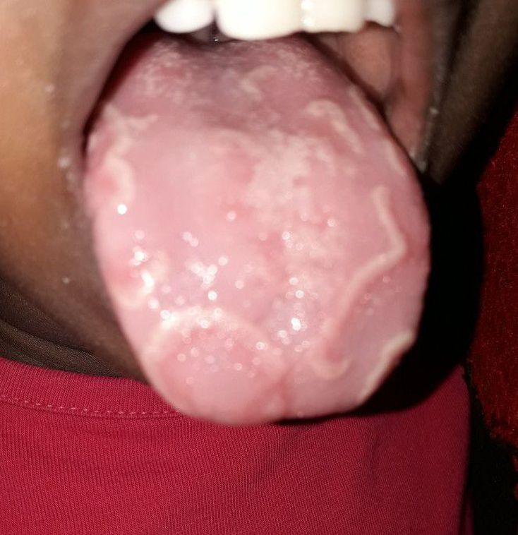 4 years old female child came with whitish patches on the toungue