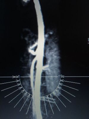 12 year old female presents with stomach pain, extreme bloating, nausea, and trouble eating. Was diagnosed with median actuate ligament syndrome a year earlier and has a ligament release on celiac artery. This is an image of the aorta with the celiac and SMA artery coming off. Do you notice anything off? What’s you’re diagnosis?