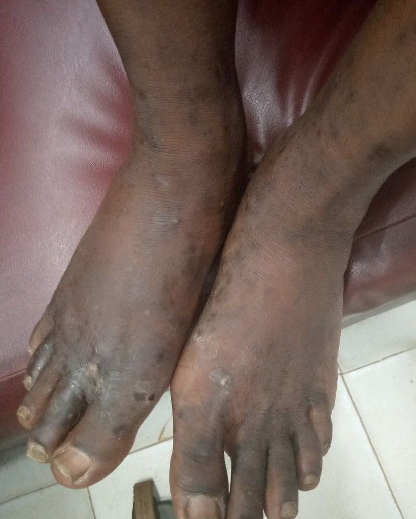 What does bottom of feet look like? Any other health problems? Possible neuropathy