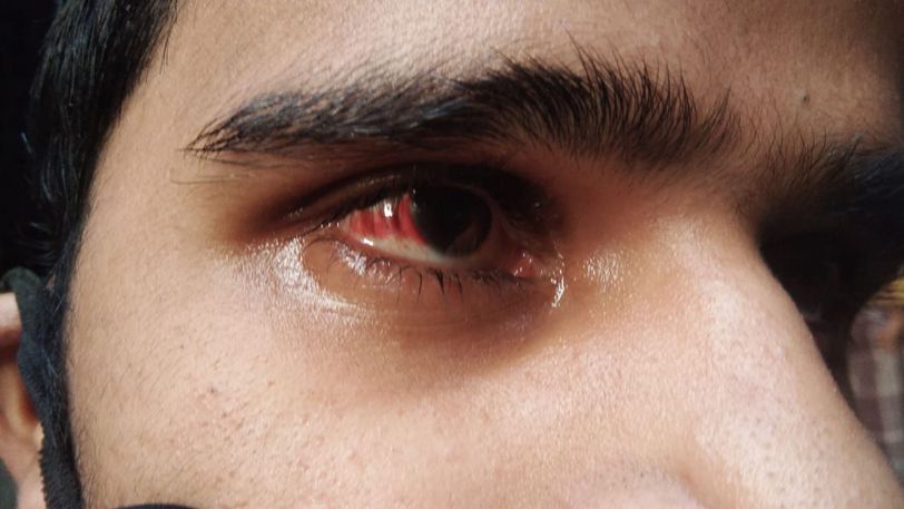 25 year old male patient. 10 days before history of entering some objects in to eyes and he doesn’t have pain just blood inside eyes.