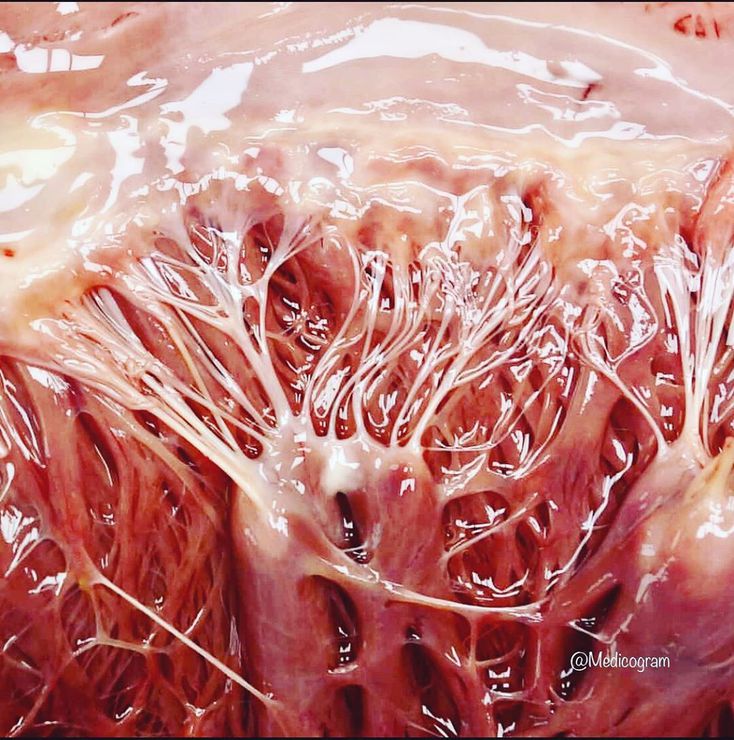 The papillary muscles are the muscles located in the ventricles of the heart. They are attached to the cusps of the atrioventricular valves (also known as the mitral and tricuspid valves) via the chordae tendineae (The white cords in the given photo) and these papillary muscles contract to prevent inversion or prolapse of these valves during systole or ventricular contraction. 📷•Medicogram•