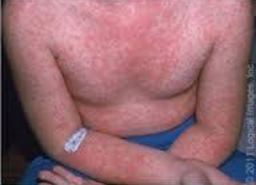 Red man syndrome is caused by drug vancomycin. Treatment is stop infusion of vancomycin apply local steroids antihistamines may be helpful apply I other antibiotics