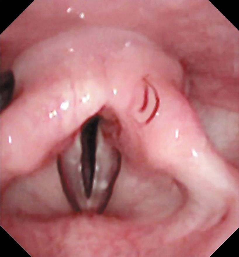 A 25-year-old woman presented with 1-week history of an itchy throat and cough. She reported having consumed raw carp 3 weeks earlier. The physical examination revealed hyperemia of the oral mucosa. Fiber-optic laryngoscopy showed a living parasite measuring 2 mm by 4 mm on the surface of the left arytenoid laryngeal mucosa, with its head attached to the mucosa by suckers (see video). The organism was removed with the use of a fiber clamp and was identified as an adult liver fluke (Clonorchis sinensis). Testing for anti–C. sinensis IgG antibody was positive. The results of liver-function testing were normal. The patient's symptoms rapidly resolved after removal of the parasite. Liver-fluke infection is a zoonotic disease that is mainly caused by consumption of raw freshwater fish and shrimp throughout Southeast Asia. Liver flukes can cause disorders of the bile duct, gallbladder, liver, and, rarely, pharynx. Morphologic and pathological analyses distinguish adult liver flukes from Gnathostoma spinigerum, Gongylonema pulchrum, and Paragonimus westermani. The patient was treated with praziquantel for 2 days. Recovery was achieved over a 16-month follow-up.
