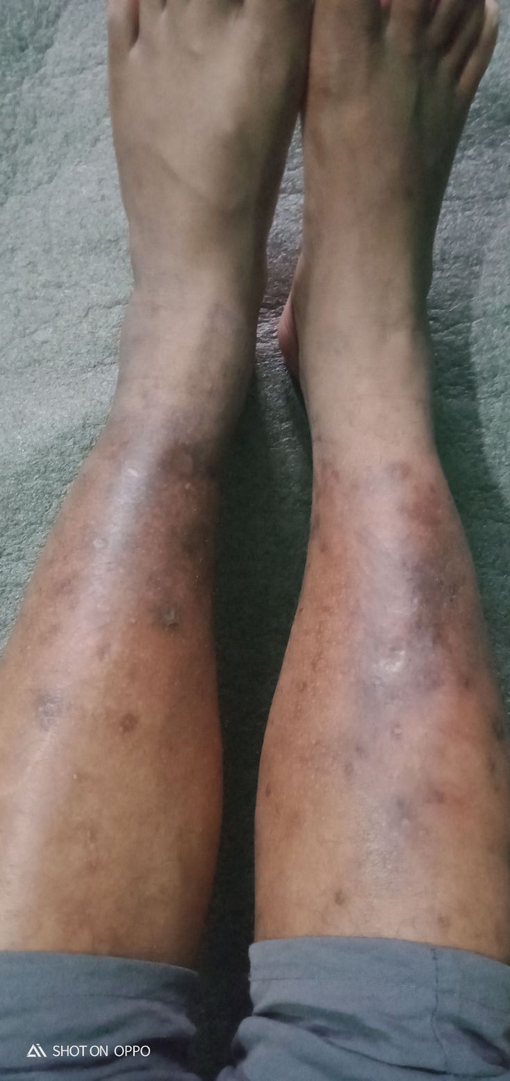 27 year male complain of itching and sweling of lower leg Previous history of cellulitis 2 year back