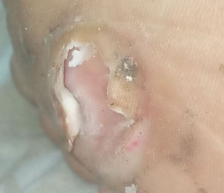 It doesn’t appear to be. Seems more like a severe blister in the final stages of healing. Note the pocket-like appearance of the wound rather than thick crusted even layers of skin.