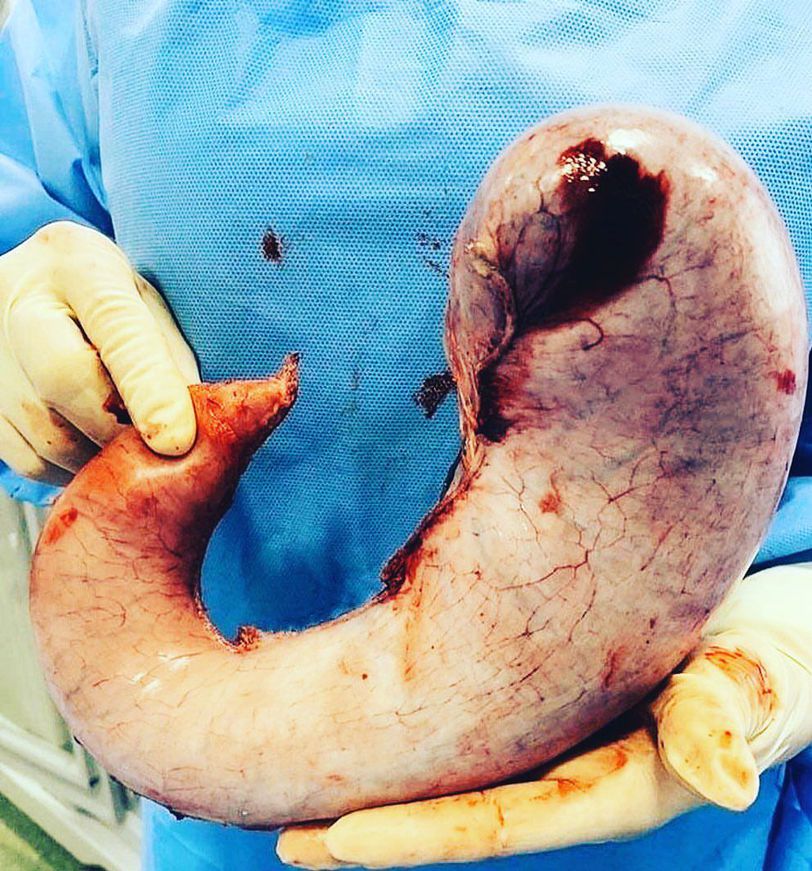 3/4 or 75% OF THE STOMACH REMOVED TO ACHIEVE WEIGHT LOSS BY A SURGICAL PROCEDURE CALLED "LAPROSCOPIC SLEEVE GASTRECTOMY"! This is the portion of the stomach, removed during a Laparoscopic sleeve gastrectomy, a type of bariatric (surgical weight loss) procedure. About 75% of the stomach was removed by a surgical resection of a large portion of the stomach along the greater curvature, leaving a narrow gastric "tube" or "sleeve". No intestines are removed or bypassed for the sleeve gastrectomy. The basic principle behind this procedure is that it greatly reduces the size of your stomach and limits the amount of food that can be eaten at a time. So the person will be less likely to feel hungry even after eating less. Being a bariatric procedure, It does not lower the absorption of nutrients as nutrients are absorbed mainly in the small intestine. •What are your thoughts regarding Laproscopic sleeve gastrectomy ? Let us know in the comments! 📷•Medicogram• #weightloss #weightlossjourney #obesity #surgery #gastrectomy #fitnessmotivation #healthcare #health #doctors #now #medicogram