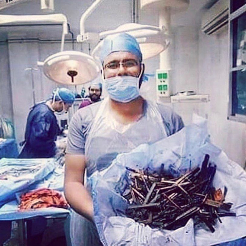 It’s not a big deal, just screws, nails, spoons, woods, hair, metal chains, and a tooth brush found in her stomach! - This 43-year-old female patient with psychiatric disorders appeared to have had abdominal pain and vomiting for 10 days. It is known that she has a history of foreign body ingestion. "Metalbezoars" are group of findings in the gastrointestinal tract and are composed of a wide variety of materials. After urgent exploration, "nails, pens, spoons, woods, hair, a metal chain and a tooth brush" were extracted from the stomach via gastrotomy.