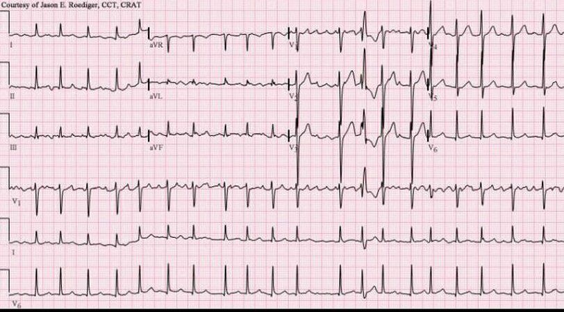 It is atrial fibrillation No visible P waves only T waves And it is irregularly irregular rythym Managmenr depend on hemodynamic status and rythym duration