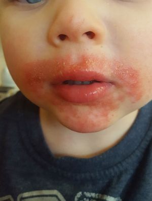 2yo male. Had this red dry rash over mouth for almost 12 months. Tried hydrocortisone, Sudocrem, Cetraben, metro gel, fifty 50, Fucidin cream and Fucidin ointment. No known allergies, rarely has a dummy. Ideas on diagnosis and treatment?