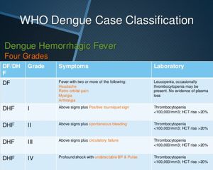 DF - Dengue Fever DHF - Dengue Hemorrhagic Fever Read the old post of Dengue for its epidemiology and some signs.
