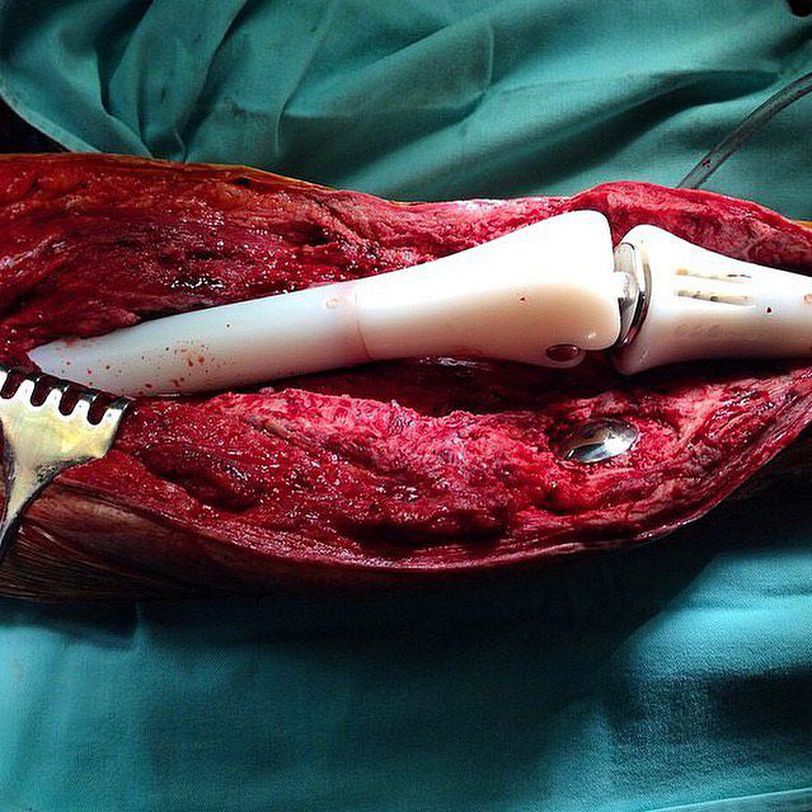 β£ Osteosarcoma is a malignant, osteoid and bone-forming tumor arising from mesenchymal stem cells (osteoblasts) located in the periosteum of the bone.β£ The primary tumor almost always arises from the metaphyses of long bones (particularly distal femur and proximal tibia) β which matches the case above.β£ It can metastasize (spread) to the lungs, skeletal system, and regional lymph nodes.β£ Clinically it frequently first manifests with pain (progressive, worsens at night and with activity); swelling after trauma to the bone (tissue mass that is tender to palpation and accompanied by erythema), limping and decreased range of motion, and B symptoms (fever, night sweats, and weight loss).β£ β£ A complete radical, surgical, en bloc resection of the cancer with neoadjuvant and adjuvant polychemotherapy, is the treatment of choice in osteosarcoma. Although about 90% of patients are able to have limb-salvage surgery, complications, particularly infection, prosthetic loosening and non-union, or local tumor recurrence may cause the need for further surgery or amputation.β£ Limb-sparing procedures should be attempted, but amputation may be necessary for definitive resection.β£ Photo credit @alberto_tostes