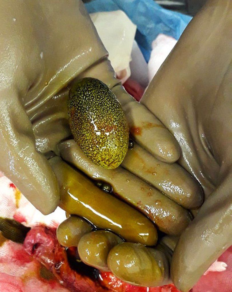 What does it resemble? π₯ The gallbladder is a small, pear-shaped organ on the right side of the abdomen, just beneath the liver. It holds a digestive fluid called bile that's released into the small intestine. Gallstones come in many different shapes, sizes, and quantities. They can be made up of a variety of different combinations and percentages of cholesterol, bile salts, lecithin, bilirubin, etc. Cholesterol stones account for > 85% of gallstones, and for them to actually form, bile must be supersaturated with cholesterol, with nucleation and stone growth. Normally, water-insoluble cholesterol is made water soluble by combining with bile salts and lecithin to form mixed micelles. Supersaturation of bile with cholesterol most commonly results from excessive cholesterol secretion but may result from a decrease in bile salt secretion or in lecithin secretion. Thus, the excess cholesterol must precipitate from solution as solid microcrystals, which aggregates and grows. Yellow snd soft gallstones have more cholesterol in them, black ones have more bilirubin, and hard ones likely have more bile salt component to them. Migration of a gallstone into the opening of the cystic duct may block the outflow of bile during gallbladder contraction. The resulting increase in gallbladder wall tension produces the characteristic type of pain we know as biliary colic. Cystic duct obstruction, if it persists for more than a few hours, may lead to acute gallbladder inflammation (acute cholecystitis). Choledocholithiasis on the other hand, refers to the presence of gallstones in the common bile duct. Usually, this occurs when a gallstone successfully passes further all the way from gallbladder to the cystic duct and into the common bile duct.