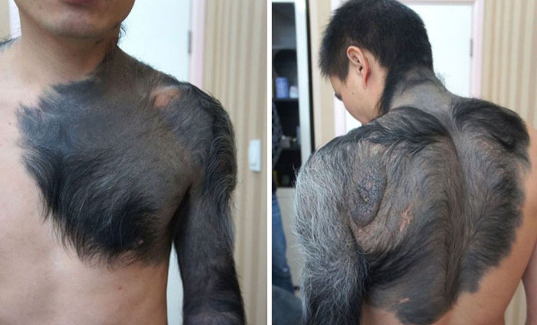 Congenital Giant Pigmented Nevus, Commonly Know As Giant Furred Moles. Giant congenital nevus. A congenital pigmented or melanocytic nevus is a dark-colored, often hairy, patch of skin. It is present at birth or appears in the first year of life. A giant congenital nevus is smaller in infants and children, but it usually continues to grow as the child grows. The hair that grows from these nevi can be brown or even a bluish-black color.