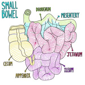 It’s a double folded layer of peritoneum that connects the small intestine to the posterior abdominal wall.